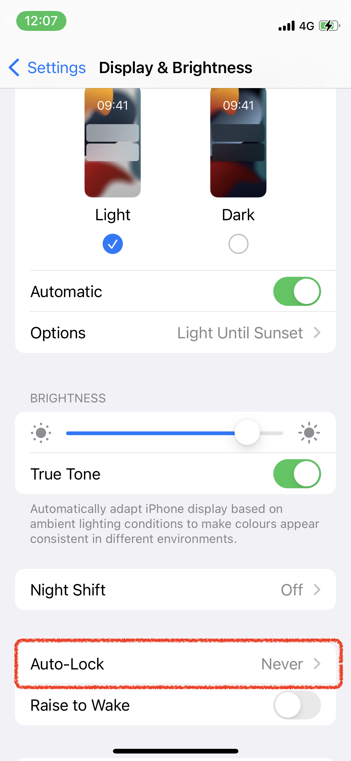 6) Set Auto-Lock to never